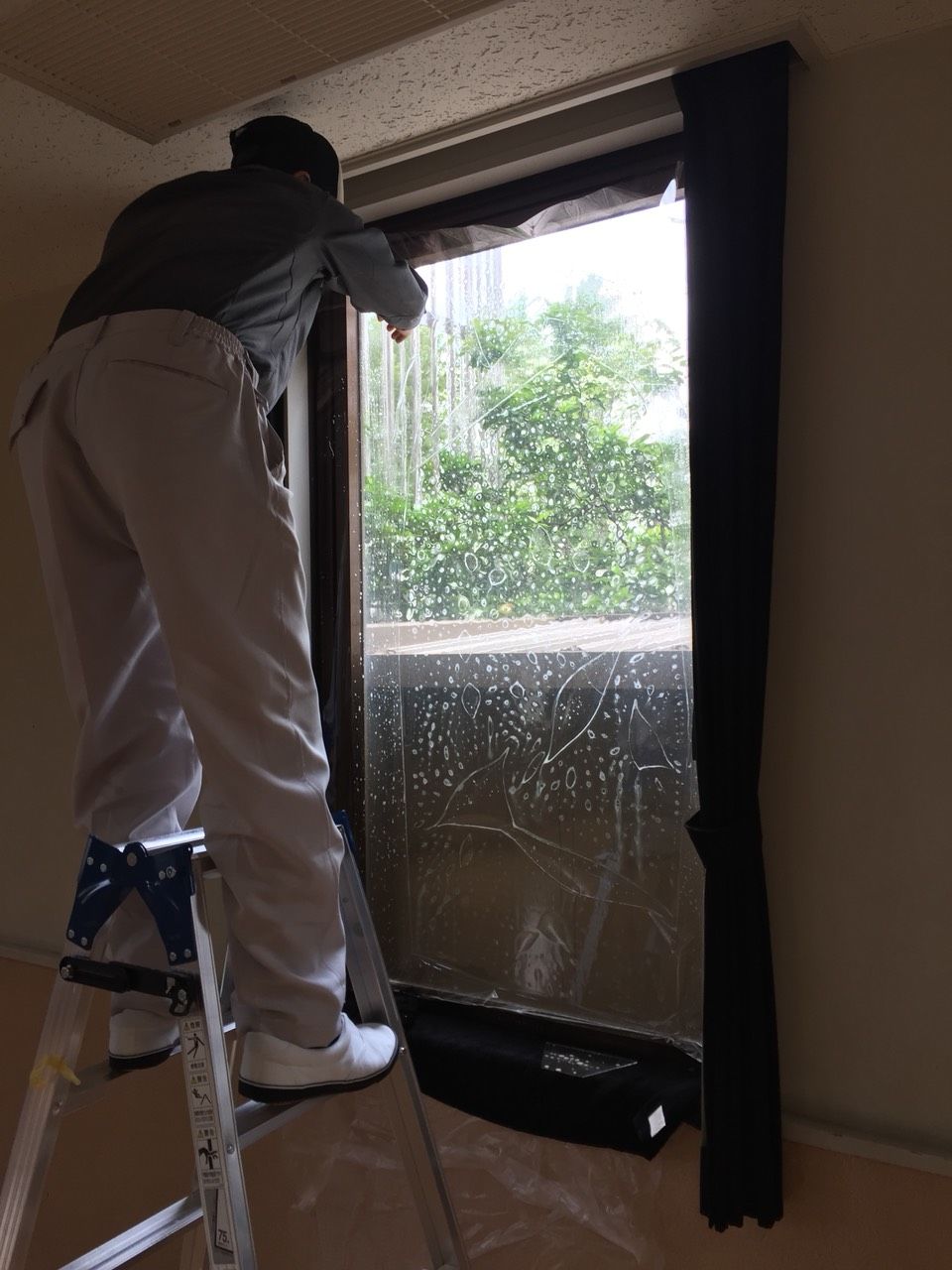基本的には内側から施工を行なっておりますが、窓ガラスによって内側から施工できないガラスがございますので、その際は外側から施工させていただきます。